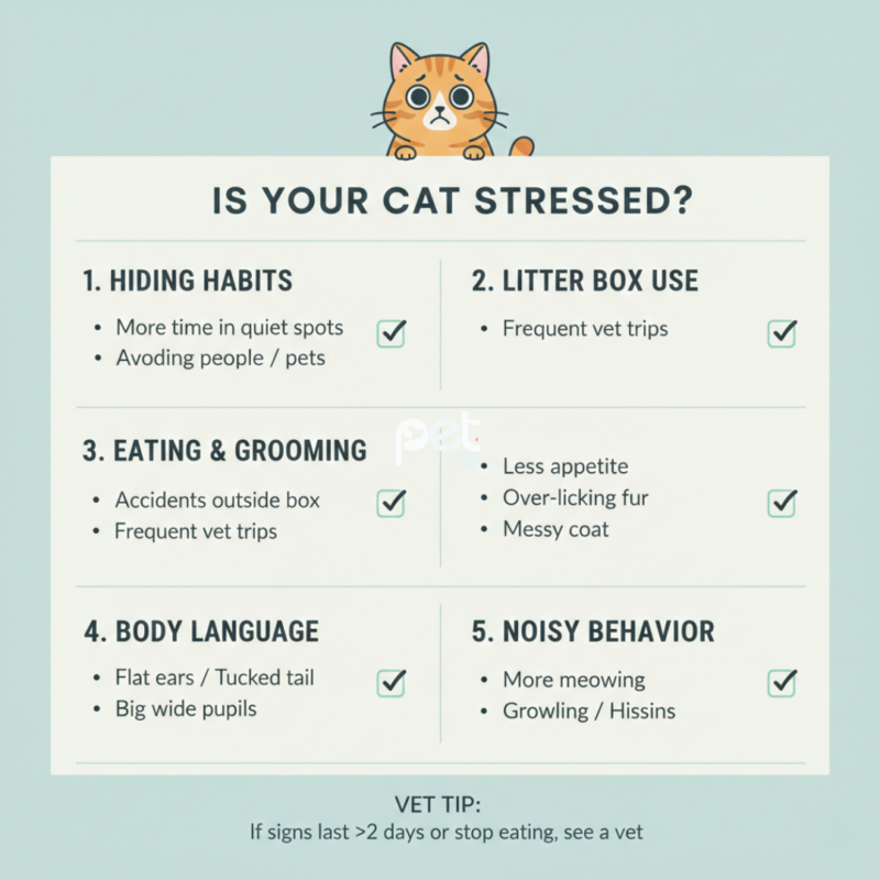 It can be hard to tell when a cat is stressed because they are very good at hiding their feelings. However, if you watch their behavior closely, you will see small signs.