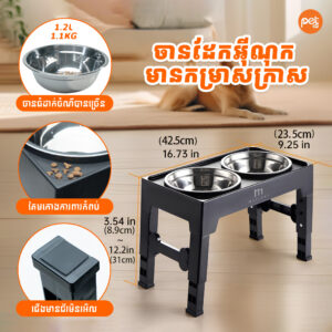 Double Stainless Steel Bowls: Includes two high-quality, rust-resistant stainless steel bowls that are durable, hygienic, and easy to clean.