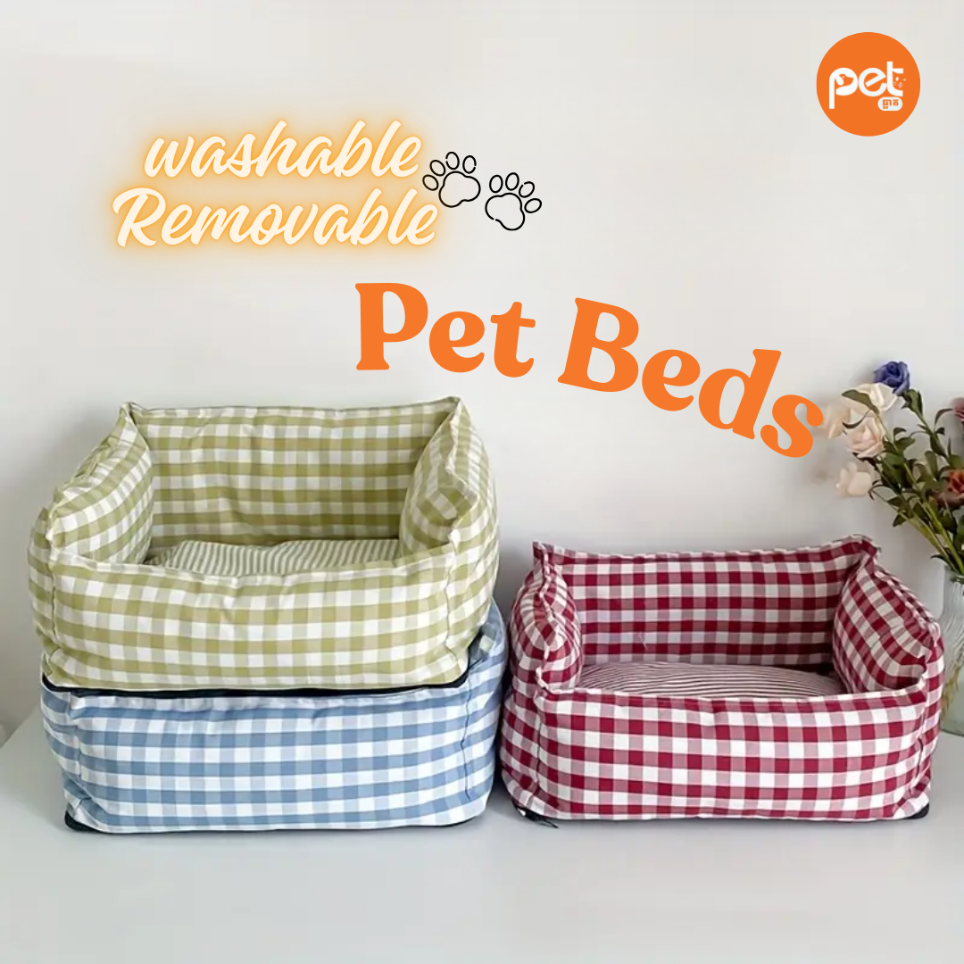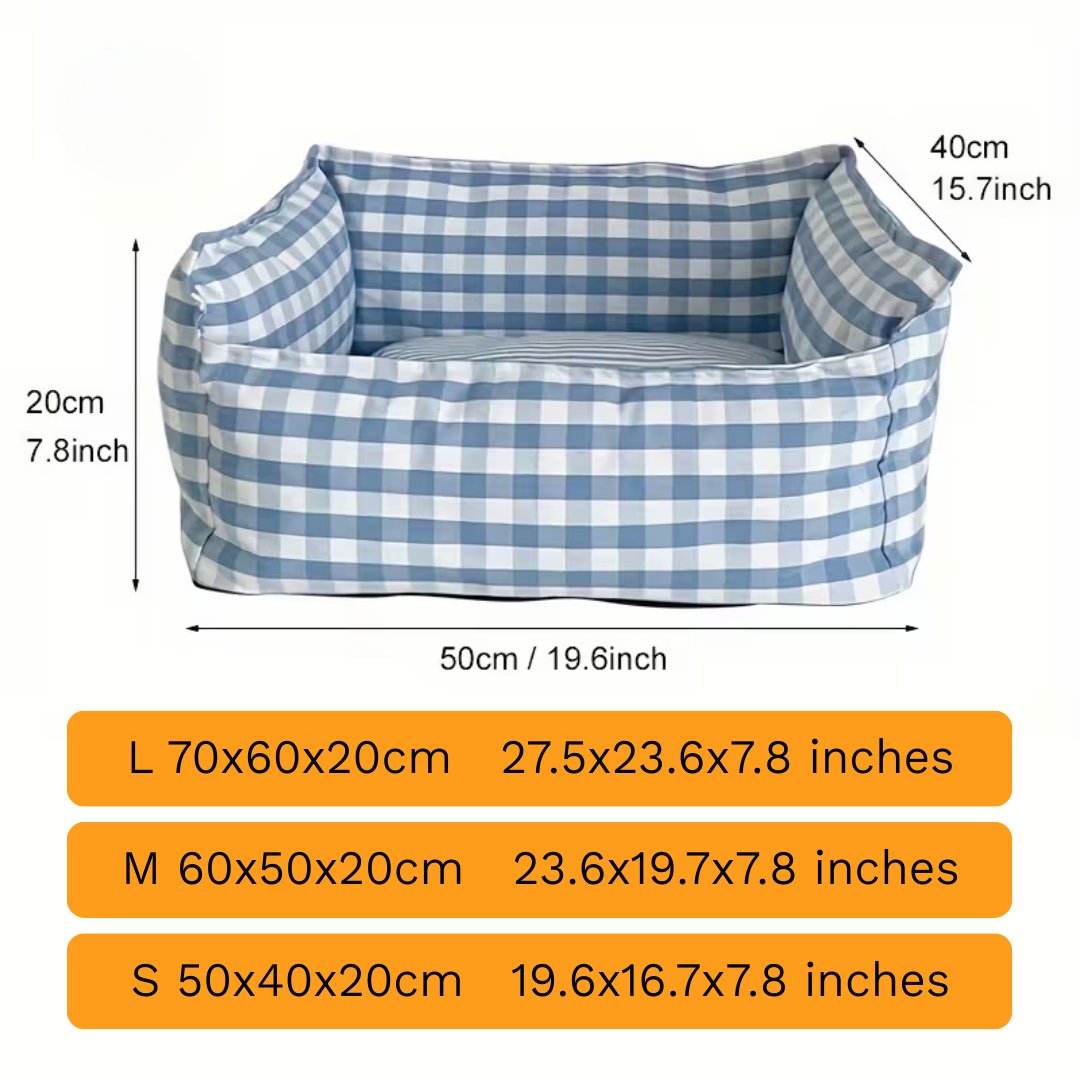 Give your beloved pet a dedicated space that is as stylish as it is cozy. Our Gingham Pet Beds feature a timeless checkered pattern and a reinforced “bolster” design, providing a secure sense of protection for pets who love to curl up and rest their heads.
